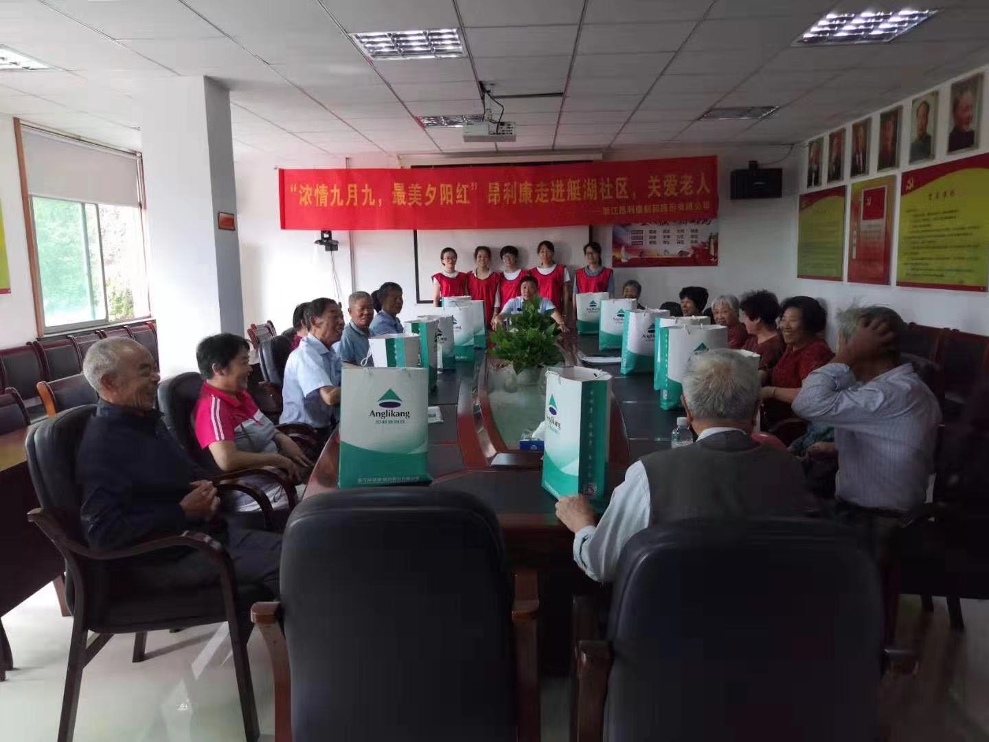 吳繼耀同志代表浙江昂利康制藥股份有限公司出席本次活動(dòng),現(xiàn)場(chǎng)書(shū)寫(xiě)“老吾老以及人之老”字樣的書(shū)法作品,贈(zèng)于艇湖社區(qū),體現(xiàn)浙江昂利康制藥股份有限公司對(duì)社會(huì)老人的關(guān)愛(ài)之情。最后,艇湖社區(qū)黨支部書(shū)記李維正同志對(duì)本次參加活動(dòng)的老人做了介紹,并提出“浙江昂利康制藥股份有限公司開(kāi)展的本次活動(dòng),體現(xiàn)了一個(gè)企業(yè)對(duì)老人的關(guān)愛(ài),同時(shí)我們老年同志也要支持他們企業(yè)的發(fā)展建設(shè),讓他們安心的生產(chǎn)和經(jīng)營(yíng),創(chuàng)造更多的就業(yè)崗位和財(cái)富,來(lái)回報(bào)社會(huì)”。本次參加活動(dòng)的老人有:原村退休老干部、部隊(duì)退役老干部、艇湖社區(qū)最年長(zhǎng)的老人、普通老人。浙江昂利康制藥股份有限公司為本次參加活動(dòng)的老人代表們分發(fā)節(jié)日的紀(jì)念禮品。因崔老書(shū)記年事已高,未能參加本次活動(dòng),浙江昂利康制藥股份有限公司志愿者小分隊(duì)在社區(qū)工作人員的帶領(lǐng)下,帶著紀(jì)念品登門拜訪了崔老書(shū)記,向崔老書(shū)記送去了浙江昂利康制藥股份有限公司的關(guān)心和慰問(wèn)。老人們一張張的笑臉就是對(duì)本次活動(dòng)最好的肯定。